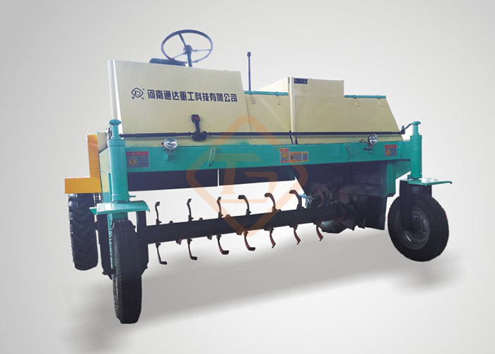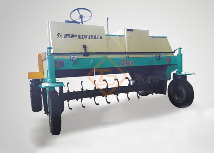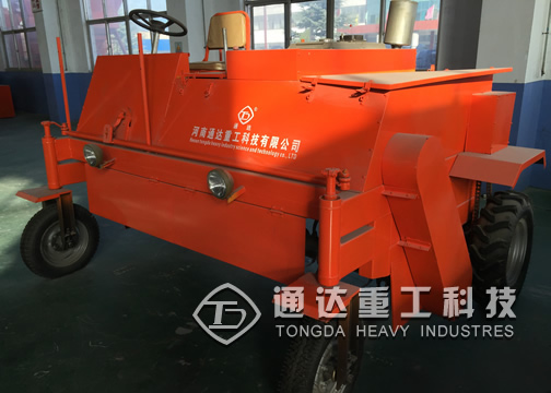 行走式翻拋機(自行式翻拋機)是生產生物有機肥專用成套設備中的主機,該機采取四輪行走設計,可前進、倒退、轉彎,由一人操控駕駛。行駛中整車騎跨在予先堆置的長條形肥基上,由機架下掛裝的旋轉刀軸對肥基原料實施翻拌、蓬松、移堆,車過之后篡成新的條形垛堆。即可在開闊場地,也可在車間大棚中實施作業。