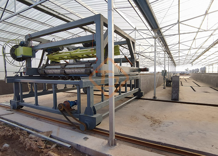 鏈板式翻堆機(jī)適用于畜禽糞便、污泥垃圾、秸稈等有機(jī)固體廢棄物的槽式好氧堆肥。該機(jī)的行走系統(tǒng)采用變頻調(diào)速、對(duì)不同物料的適應(yīng)性較好且運(yùn)行平穩(wěn)、翻堆效率高、能進(jìn)行深槽作業(yè)等優(yōu)點(diǎn),有效縮短發(fā)酵周期,提高生產(chǎn)效率及產(chǎn)品質(zhì)量。采用變頻調(diào)速速行走系統(tǒng),能很好適應(yīng)工作負(fù)荷的變化。可根據(jù)物料阻力情況,靈活調(diào)節(jié)行走速度,使設(shè)備有更強(qiáng)的適應(yīng)性和靈活性。可選配移行車,實(shí)現(xiàn)多槽設(shè)備工用,在設(shè)備的能力允許條件下,只需增建發(fā)酵槽,即可擴(kuò)大生產(chǎn)規(guī)模,提高了設(shè)備使用價(jià)值。