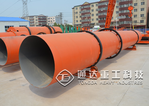 物料經螺旋擠壓進入烘干滾筒,被其中的抄板抄起至高度后落下,在下落過程中受破碎裝置撞擊,并受滾筒底部送進的熱風作用使其迅速干燥,烘干后的物料為均勻的顆粒狀,由滾筒的出料口排出。
