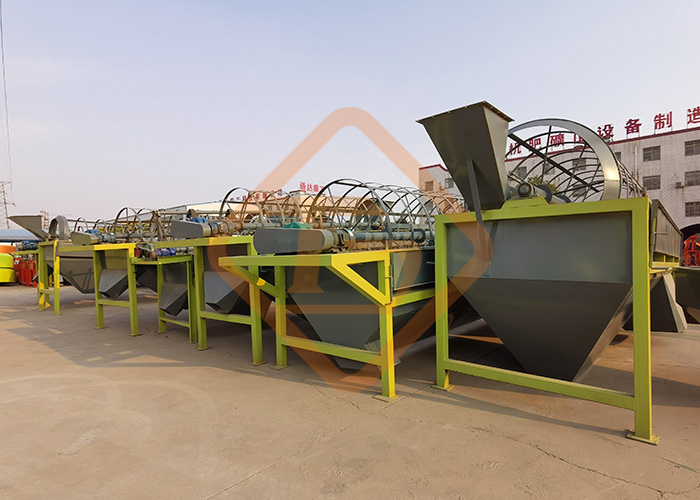 自清式籠式滾筒篩分機是通過變速箱式減速系統對設備中心分離筒實行合理旋轉,中心分離筒是由若干個圓環狀扁鋼圈組成的篩網,中心分離筒安裝是與地平面呈傾斜狀態,工作中物料從中心分離筒上端進入筒網,在分離筒旋轉過程中,細物料自上而下通過圓環狀扁鋼組成的篩網間隔中得到分離,粗物料從分離筒下端排出進入粉碎機。設備中設有板式自動清篩機構,在分離過程中,通過清篩機構與篩體的相對運動,由清篩機構對篩體進行連續“梳理”,使篩體在整個工作過程中始終保持清潔,不會因篩孔堵塞而影響篩分效率。